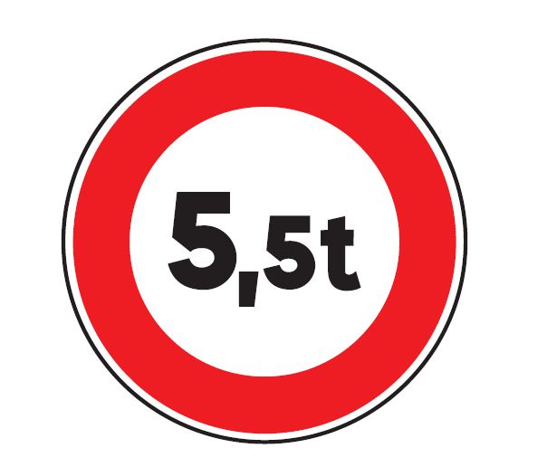 Ce panneau de signalisation routière type B13 indique un accès interdit aux véhicules ou ensemble de véhicules ayant un poids, chargement compris, supérieure à 5.5 tonnes.