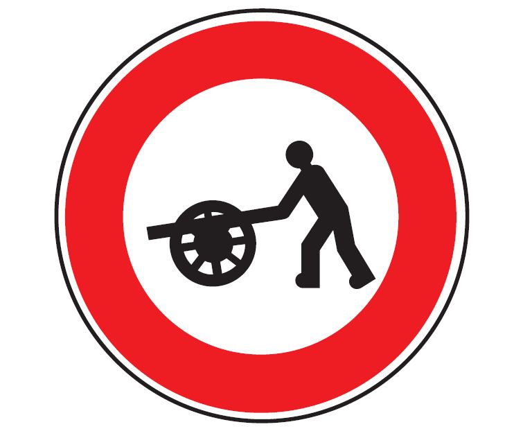 Ce panneau de signalisation routière type B9e indique un accès interdit aux véhicules à bras.