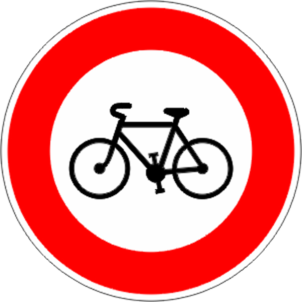 Ce panneau de signalisation routière type B9b indique l'interdiction à l'accès aux cycles.