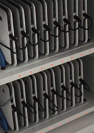 Ce mobilier numérique optimise l’usage, le transport et le rangement du parc de tablettes entre les salles.