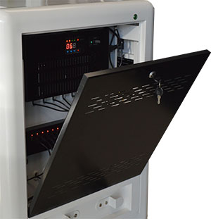 Optimisé pour un usage intensif, il est doté d’un système de minuterie et de séquençage d’alimentation, d’un tiroir pour ordinateur destiné à l’enseignant et diverses options de synchronisation et de connectivité.