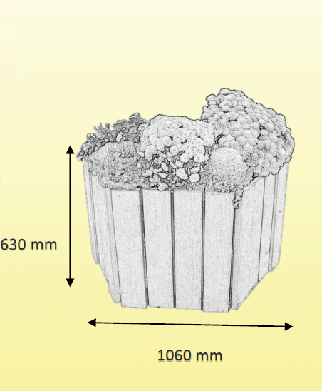 Je recherche une jardinière hexagonale, en pin traité classe IV, hauteur 60 cm, diamètre 110 cm.