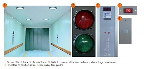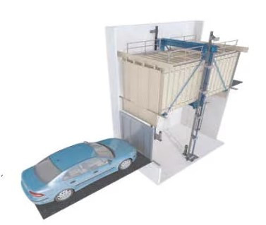 Cet ascenseur monte-voiture est spécialement conçu pour le transport vertical des automobiles avec leurs conducteurs.