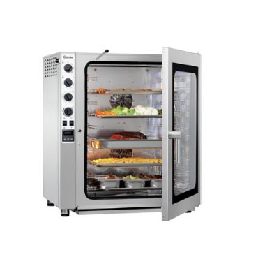 Le four mixte à vapeur électrique avec hotte aspirante est un matériel de cuisine professionnelle d'une grande polyvalence adapté aussi bien à une cuisson vapeur classique que combinée à de l'air chaud ou pour des cuissons basse température.