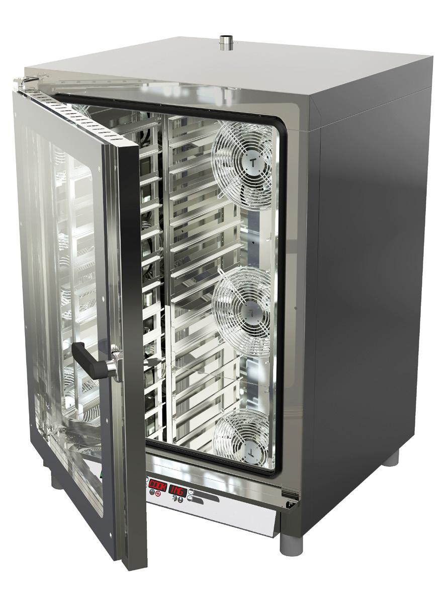 Ce four professionnel dispose de 4 à 10 niveaux (selon modèle), compatible avec des plaques de 600 X 400 mn ou des GN 1/1.