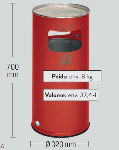 cendrier poubelle dispose d'une capacité 37,4 Litres avec une hauteur de 700 mm et Ø 320 mm.