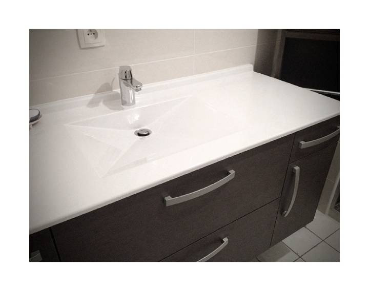 Le plan, la vasque et le dosseret arrière sont moulés en une seule pièce, entraînant les infiltrations d'eau et facilitant l'entretien quotidien.