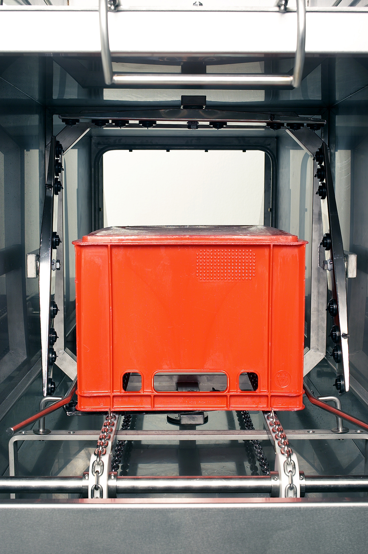 tunnel de lavage de caisses est une machine rationnelle et efficace utilisable par une seule personne.