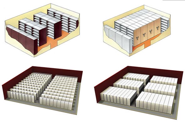 - des rayonnages fixes ou mobiles,