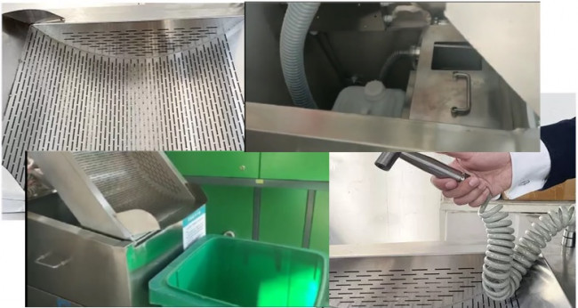 2– Laver les déchets à l’aide de la douchette intégrée puis laisser égoutter environ 1 minute.