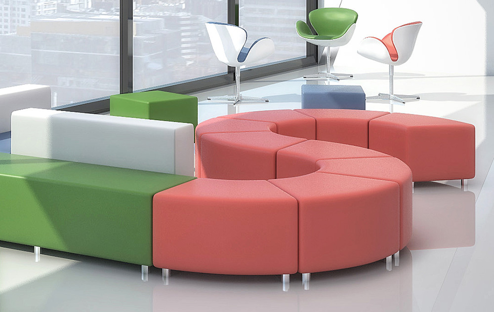 Pensé pour le mobilier scolaire collaboratif, chaque canapé est doté d’une structure en bois, d’un revêtement en cuir synthétique résistant au feu et d’une mousse haute densité assurant un confort optimal.