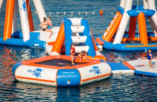 Cette aire de jeux aquatiques offre la possibilité de jeux gonflables à sensation aussi bien pour les petits que pour les grands.