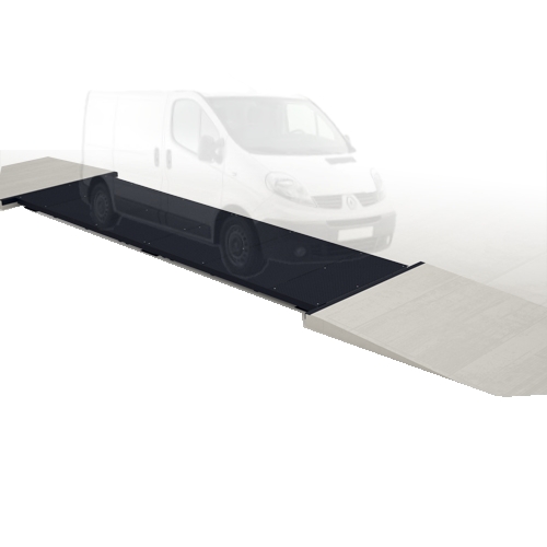 Voici un mini pont bascule pèse fourgonnette métallique pour le pesage des fourgonnettes et véhicules utilitaires. Cette bascule peut être installée hors-sol ou encastrée.