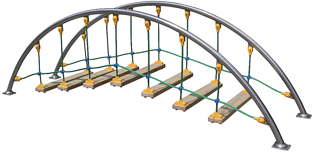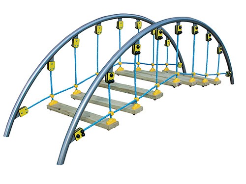 Il est composé d’un pont avec bords de sécurité et planches de bois retenues par des cordes.