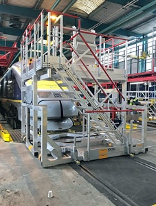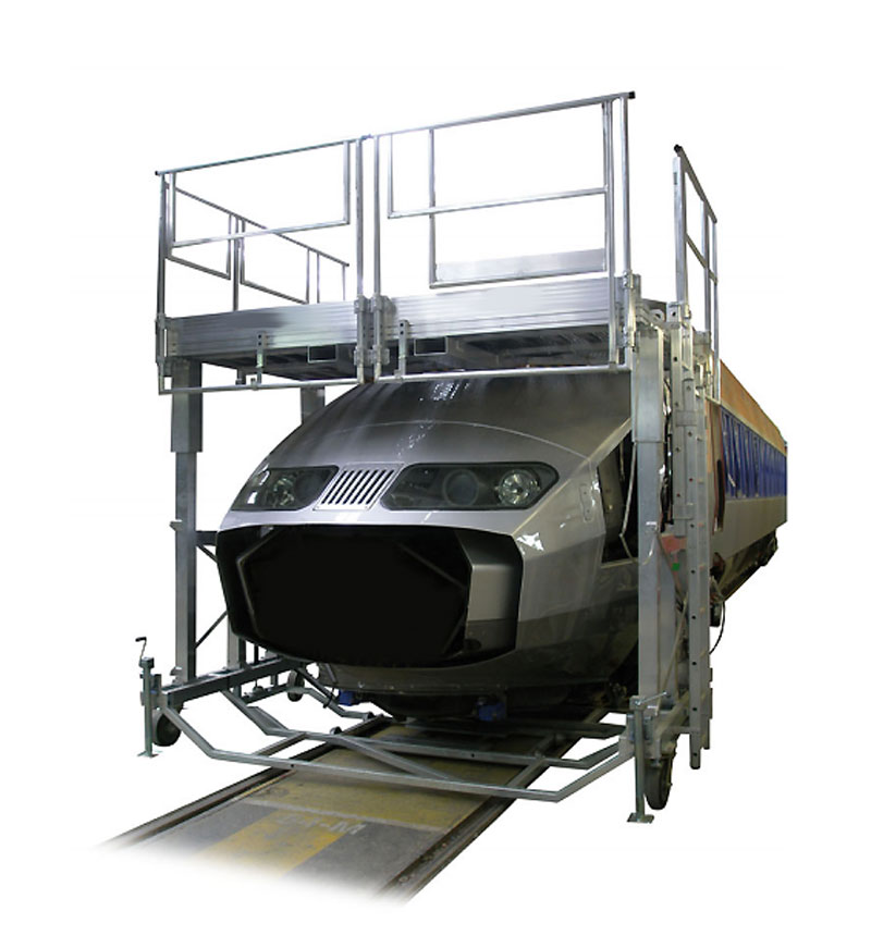 La passerelle d'accès nez TGV est une solution spécialement conçue pour répondre aux contraintes uniques des opérations de maintenance et de fabrication des véhicules de transport en commun.