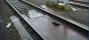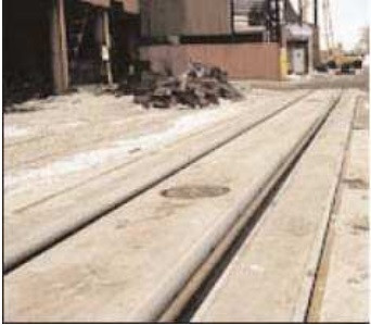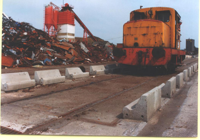 C'est un pont bascule encastré dans le sol, en béton préfabriqué, avec des rails standard à écartement normal.