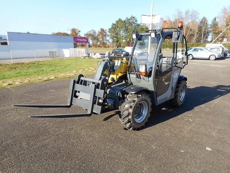 Ce mini chariot télescopique en location est un engin de chantier pour les travaux en hauteur.