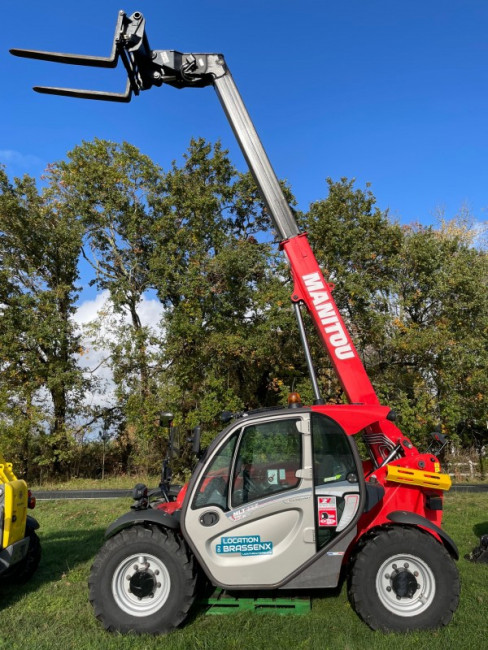 Ce chariot télescopique élévateur en location est une machine rotative destinée aux professionnels de l'agriculture.