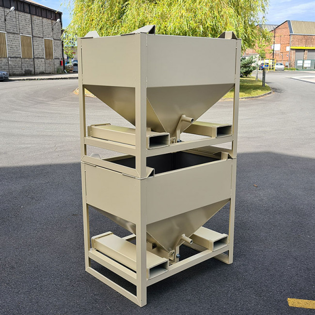 Le conteneur autovideur est conçu pour le stockage de granulés ou d’autres matériaux en vrac.