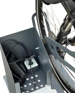 La borne de recharge VAE-Hakken Mobility est un point de recharge avec rack de stationnement sécurisé pour vélos à assistance électrique. Avantages : ✓Sécurisation du vélo et du chargeur avec un seul antivol ✓Rangement étanche pour stocker le chargeur ✓Raccordement électrique non visible ✓Le + : Sabot avant permettant la stabilisation du vélo