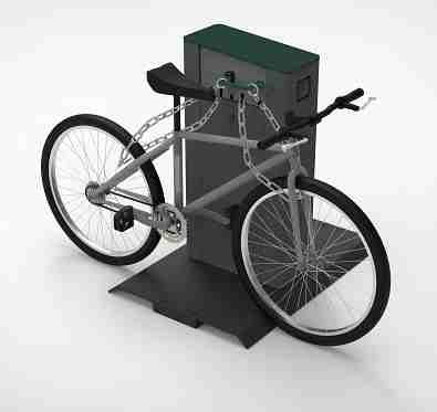 - Vélos : Deux chaînes permettent d’attacher cadre et roues, puis de verrouiller l’ensemble dans l’élément de sécurité