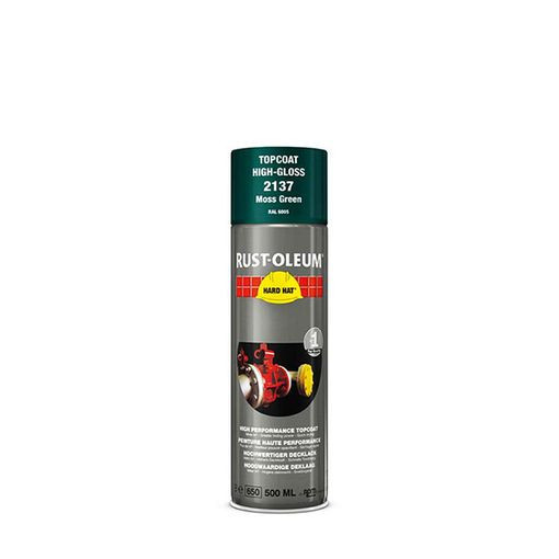 La couche de finition Hard Hat Rust-Oleum est disponible dans une gamme de couleurs RAL, y compris les plus populaires comme le noir brillant, le vert mousse et le rouge vif.