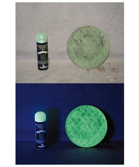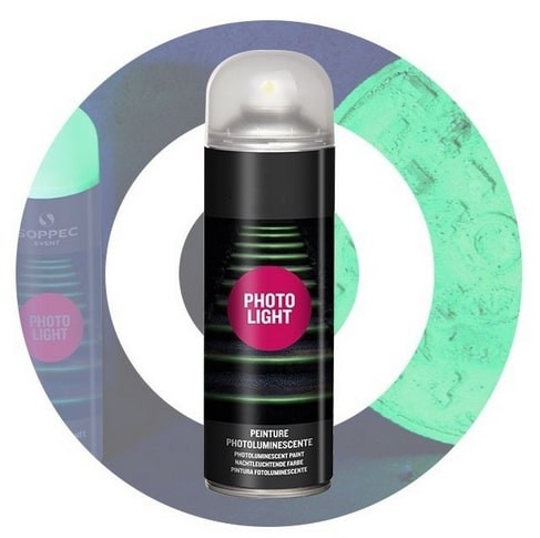 Cette peinture photoluminescente en aérosol réstitue la lumière dans l'obscurité aprés exposition à un éclairage naturel ou artificiel.