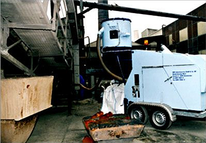 Aspiration de cendre dans une chaudière industrielle puis mise en big bag.
