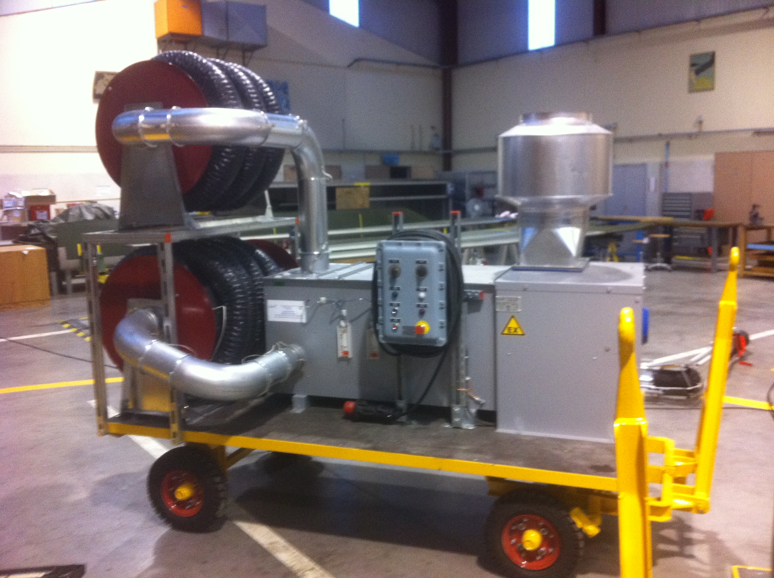 Elle se déplace facilement et est totalement autonome. Munie d'une armoire électrique, d'un ou plusieurs bras d'aspiration, d'un caisson de filtration, enrouleur, elle s'adaptera facilement d'un poste à l'autre, a condition de respecter la même nature de produits à aspirer.