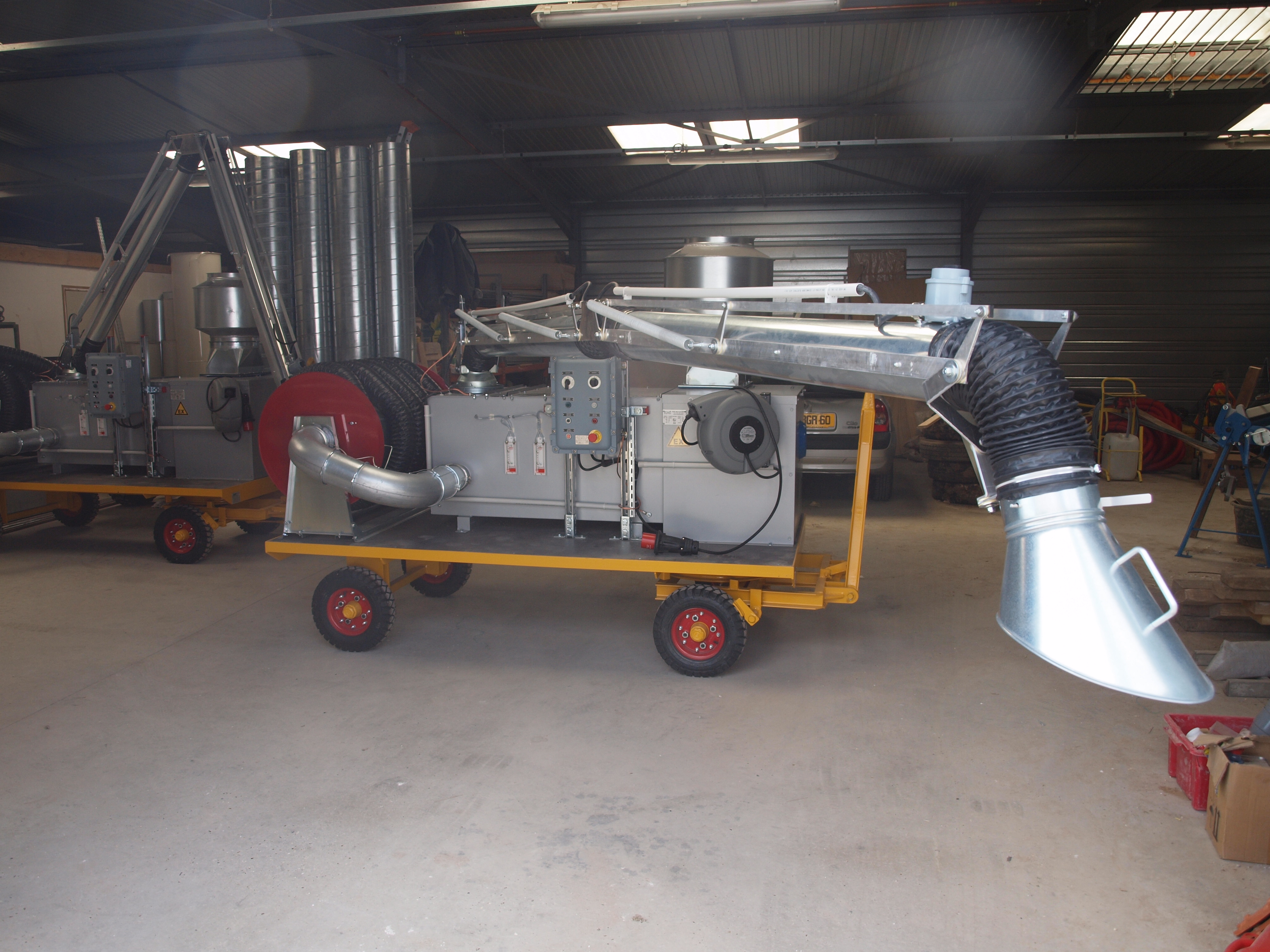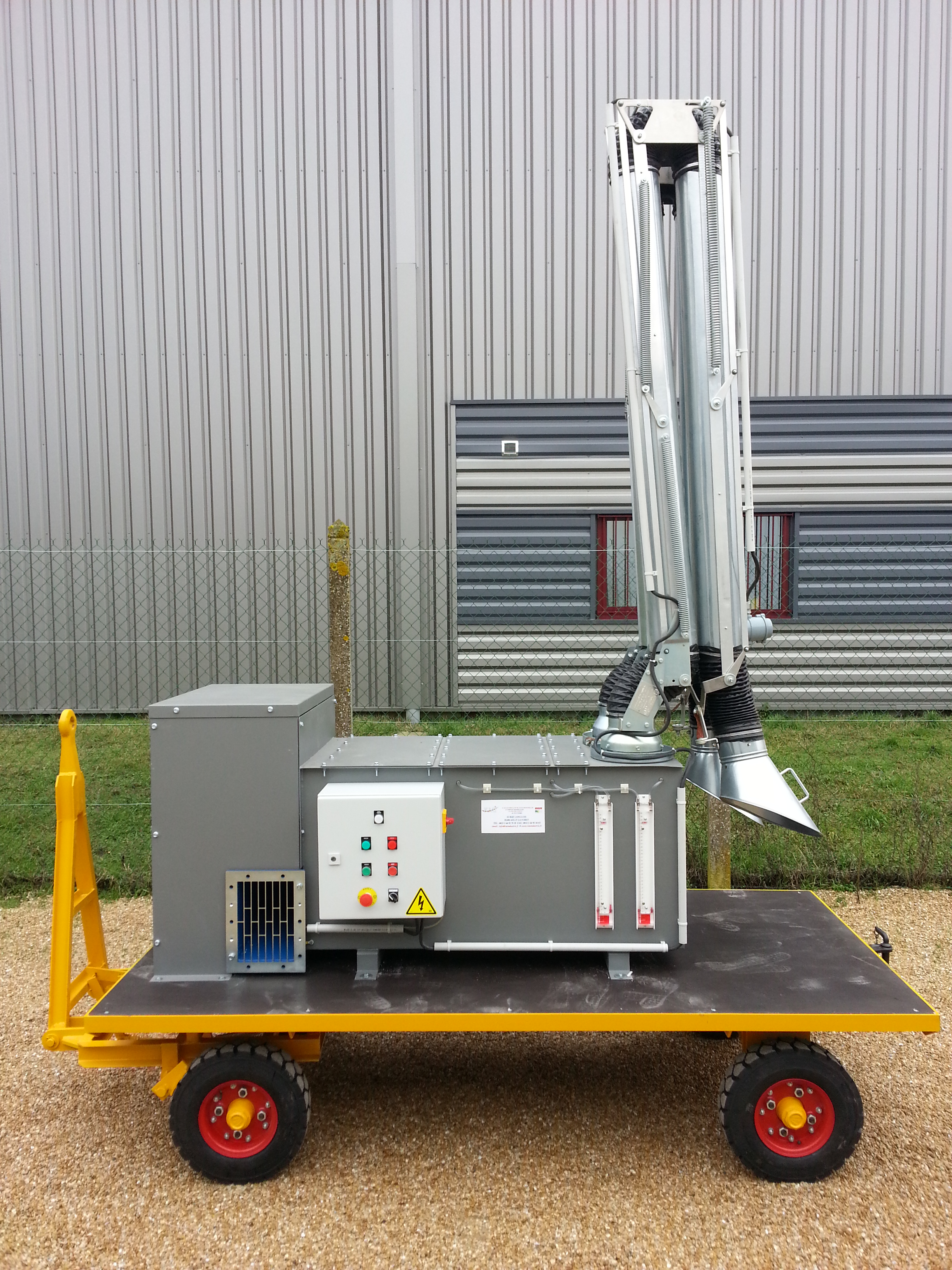La remorque aspirante autonome est conçue pour aspirer à la source les fumées de soudures, les opérations de maintenance sur les avions, les vapeurs nocives (kérosène...).
