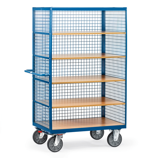 Notre chariot de manutention à 5 plateaux est conçu spécialement pour le stockage et le transport de charges diverses en magasin ateliers ou industries.