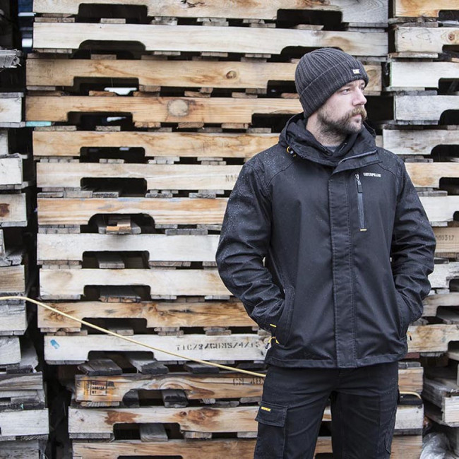 Il est équipé d’un marquage CAT sur le devant. Ce logo visible renforce l’identité de la marque.
