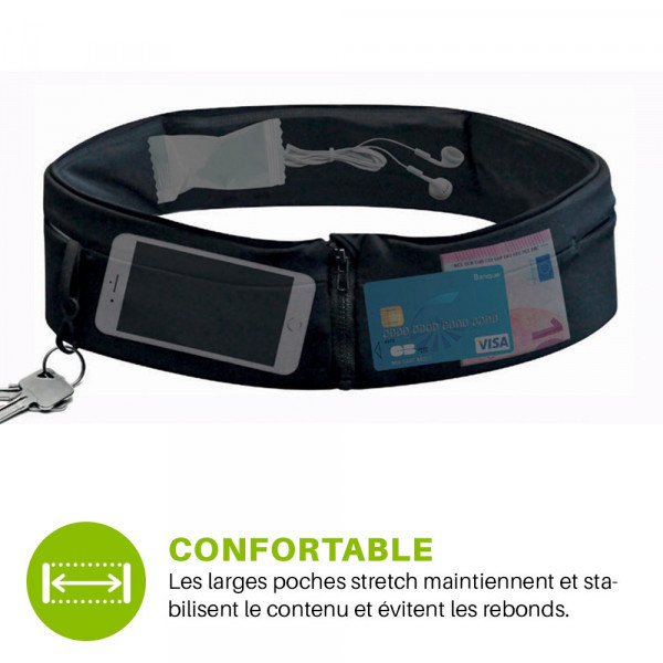 Cette ceinture running en tissu vous permet de courir avec l'essentiel à portée de main.