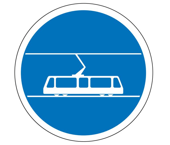 Ce panneau de type B27b, fabriqué en France, indique à l'automobiliste qu'il est à proximité d'une voie reservée aux tramways.