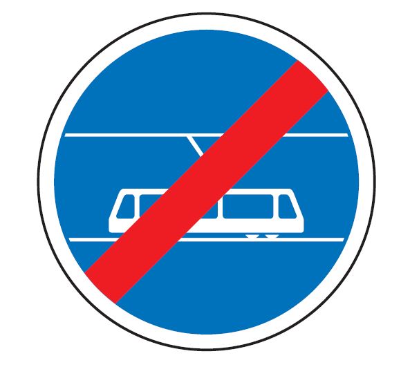 Ce panneau de type B45b, fabriqué en France, indique à l'automobiliste qu'une voie reservée aux tramways se termine.