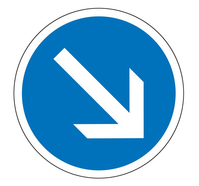 Ce panneau de type B21a1, fabriqué en France, indique à l'automobiliste qu'il doit contourner à droite avant le panneau.