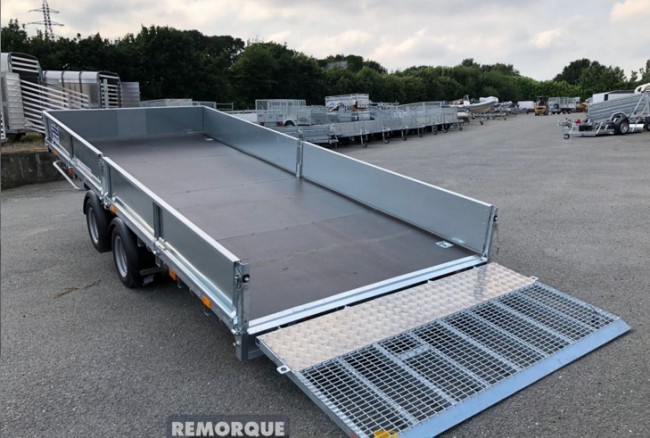 je recherche une remorque avec ridelle et qui bascule pour chargement de petit machine.