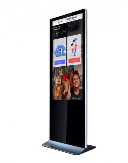 Le totem tactile vertical est un écran interactif disponible en deux tailles : 43 pouces et 55 pouces.