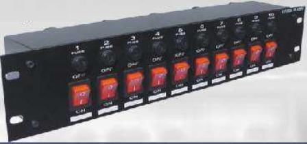 - 10 Interrupteurs lumineux M/A, 10 flashs et 10 fusibles. Câblé, capoté, antiparasité avec 10 prises secteur arrière,
