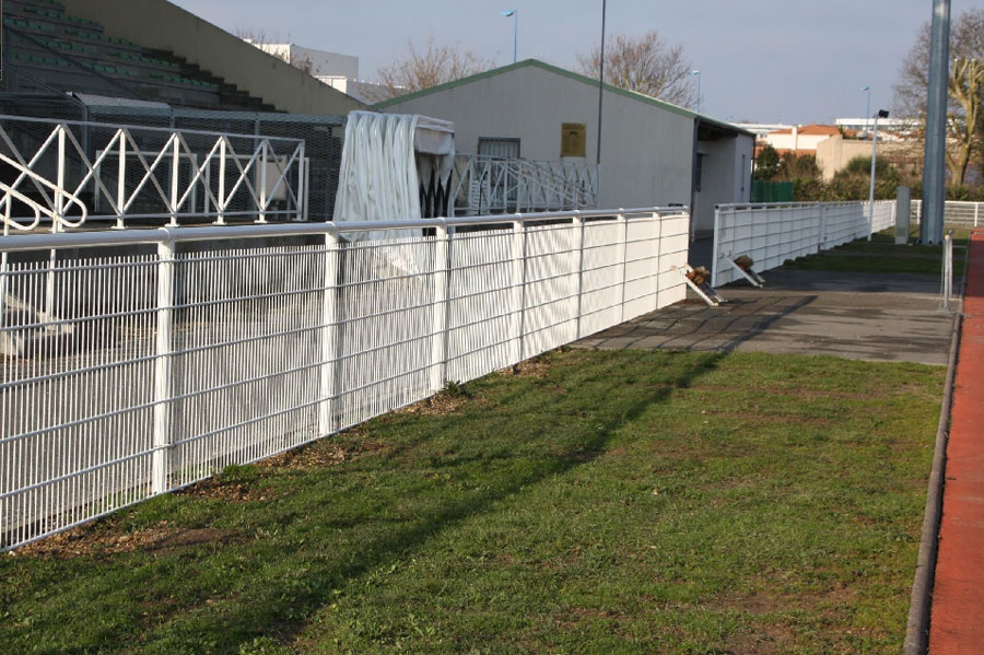 Main courante de stade remplissage panneaux rigides ainsi que 2 portails deux vantaux de meme hauteur ( 2.5 x 1m10 hauteur) pour 101 ml