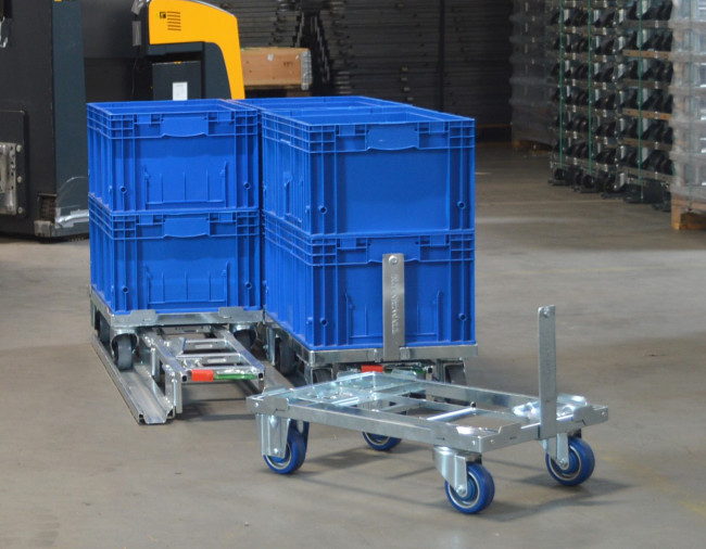 Toute une gamme de Dollys, avec ou sans timon, compatibles avec l’ensemble des standards de conditionnement, bacs, cartons…. Existe en version servante, rehaussée, ESD….