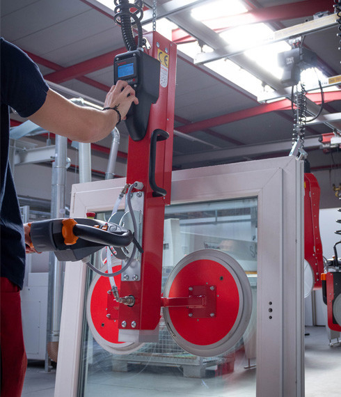 Adapté pour du verre jusqu’à 3.3 x 2.5m et un poids maximum de 250 kg. Idéale pour les processus avec usinage vertical type : bordeuses verticales, machine CNC verticales, manipulation sur A-frames..