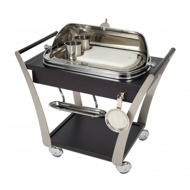 Notre chariot à trancher professionnel combine élégance et fonctionnalité pour répondre aux exigences des établissements haut de gamme.