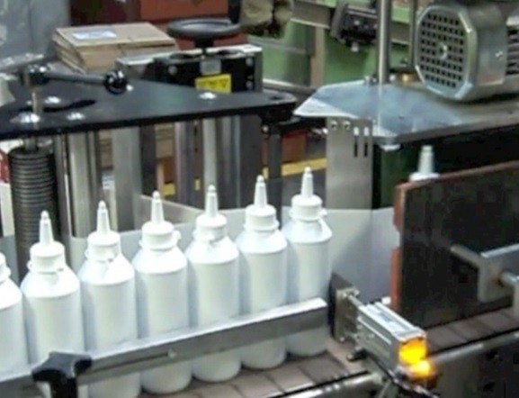 Le banderollage consiste à plaquer une étiquette sur le produit tout en le maintenant en rotation pendant son avancé.
