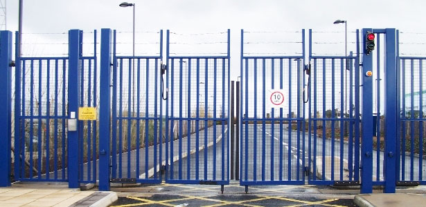 portail pivotant 2mht + système anti-intrusion en partie haute; largeur de passage libre 5m50