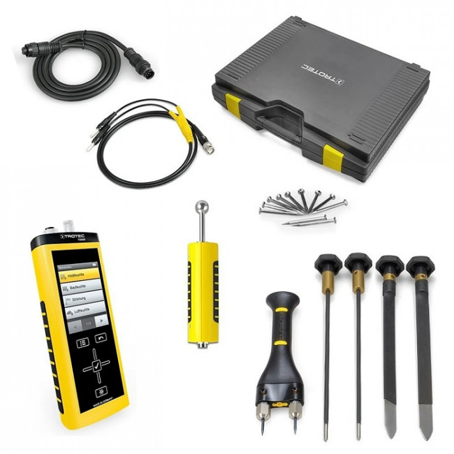 Le T3000 fonctionne avec un grand nombre de capteurs : capteurs SDI numériques (température, hygrométrie, température de surface, humidité des murs et du bois, gaz traceur H2 utilisé dans le cadre de la recherche de fuite, capteurs anémométriques) et électrodes BNC (humidité des murs/du bois, mesure résistive). Les capteurs et accessoires fournis dans ce set sont indiqués ci-après.