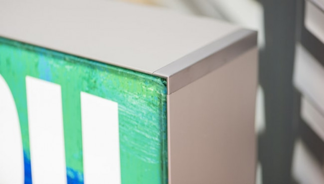 Les équerres des arrêtes du caisson lumineux offrent des angles vraiment nets, sans aucune fuite de lumière ainsi qu’une sécurité maximale (elles sont non tranchantes). La finition est parfaite.