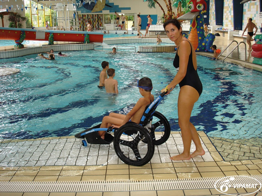 Grâce à ce fauteuil, les utilisateurs peuvent passer du vestiaire directement au bassin sans avoir besoin de multiples transferts.