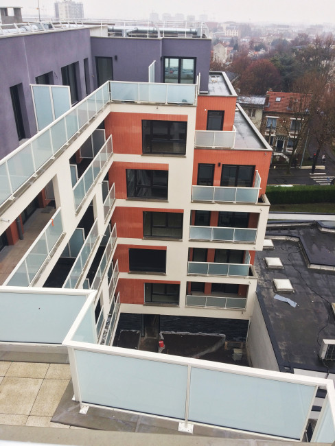 - Remplissage total en vitrage 44/2, entre les poteaux.