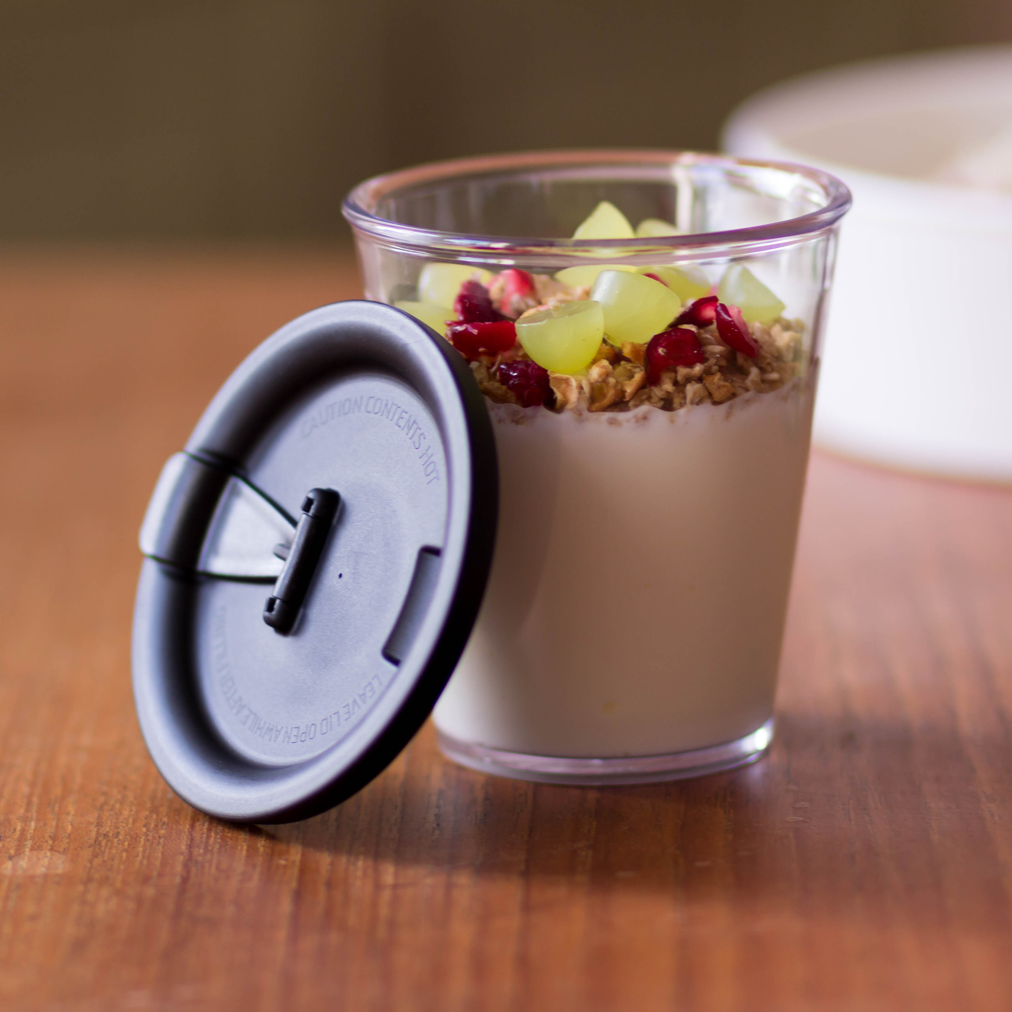 Les gobelets réutilisables conviennent non seulement pour les boissons, mais aussi pour les snacks tels que les salades de fruits, les yaourts au muesli et autres.